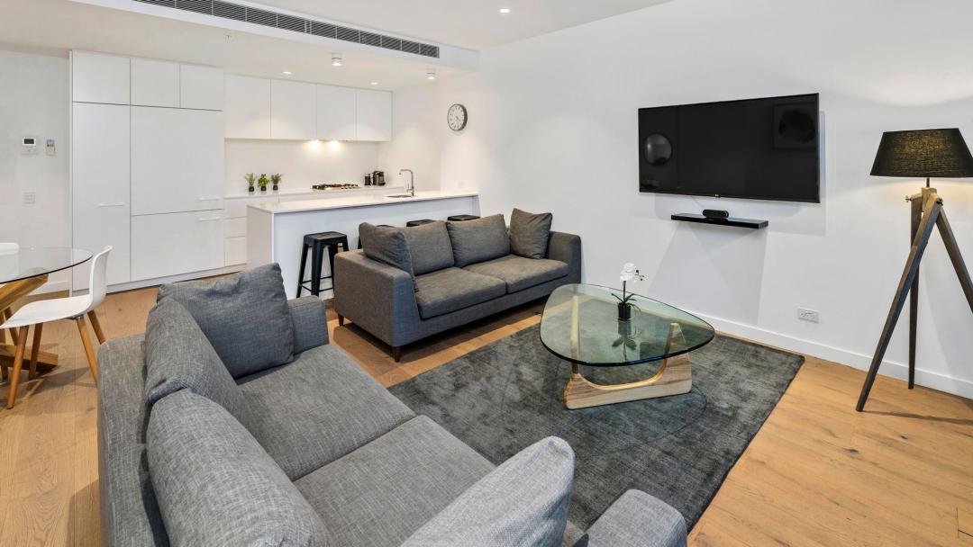 Our spacious Two Bedroom, Two Bathroom Apartments have a fully equipped kitchen, washing machine & dryer, 55 inch smart TVs, free high-speed Internet access, air conditioning, premium bedding and a Nespresso coffee machine.